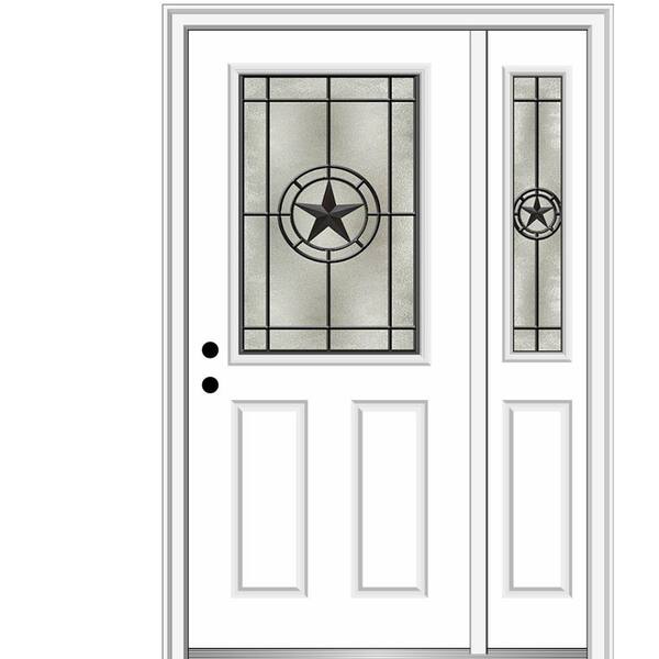 Elegant Star 53 in. x 81.75 in. Inswing 1/2 Lite Decorative Glass White Painted Fiberglass Prehung Front Door