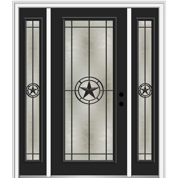 Elegant Star 60 in. x 80 in. Left-Hand Inswing Full Lite Decorative Glass Black Painted Fiberglass Prehung Front Door