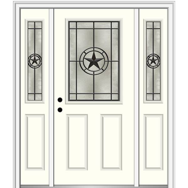 Elegant Star 64.5 in. x 81.75 in. 1/2 Lite Decorative Glass Alabaster Painted Fiberglass Prehung Front Door