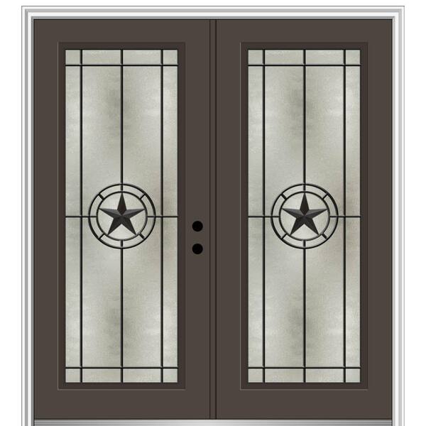 Elegant Star 64 in. x 80 in. Left-Hand/Inswing Full Lite Decorative Glass Brown Painted Fiberglass Prehung Front Door