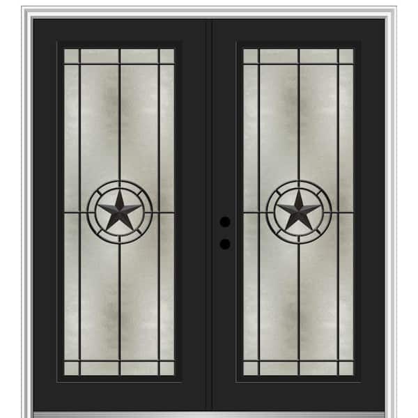 Elegant Star 68 in. x 80 in. Right-Hand/Inswing Full Lite Decorative Glass Black Painted Fiberglass Prehung Front Door
