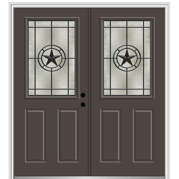 Elegant Star 72 in. x 80 in. 2-Panel Left-Hand 1/2 Lite Decorative Glass Brown Painted Fiberglass Prehung Front Door