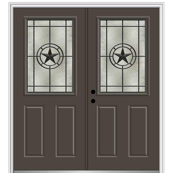 Elegant Star 72 in. x 80 in. 2-Panel Right-Hand 1/2 Lite Decorative Glass Brown Painted Fiberglass Prehung Front Door