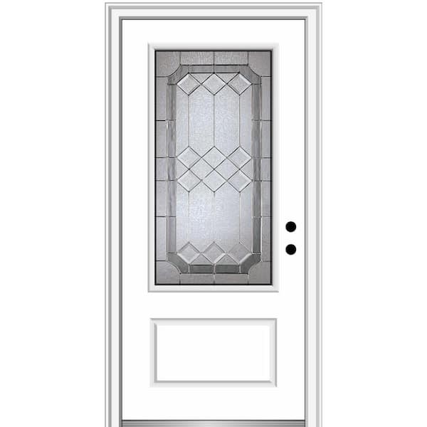 Majestic 36 in. x 80 in. Left-Hand Inswing 3/4 Lite 1-Panel Decorative Glass Primed Fiberglass Prehung Front Door