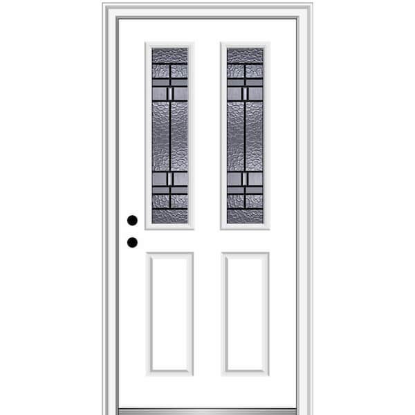 Pembrook 30 in. x 80 in. 2-Panel Right-Hand Inswing 1/2 Lite Decorative Glass Primed Fiberglass Prehung Front Door