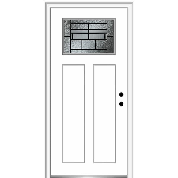 Pembrook 36 in. x 80 in. 2-Panel Left-Hand Inswing 1/4 Lite Decorative Glass Primed Fiberglass Prehung Front Door