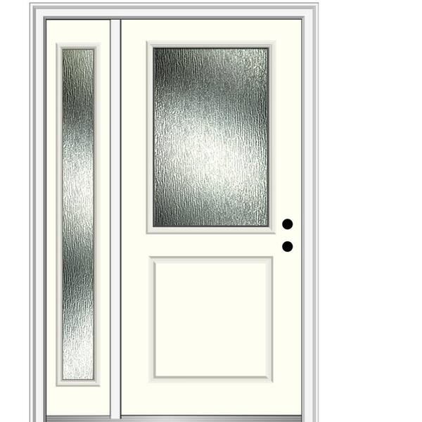 Rain Glass 48 in. x 80 in. Left-Hand Inswing Alabaster Fiberglass Prehung Front Door on 4-9/16 in. Frame