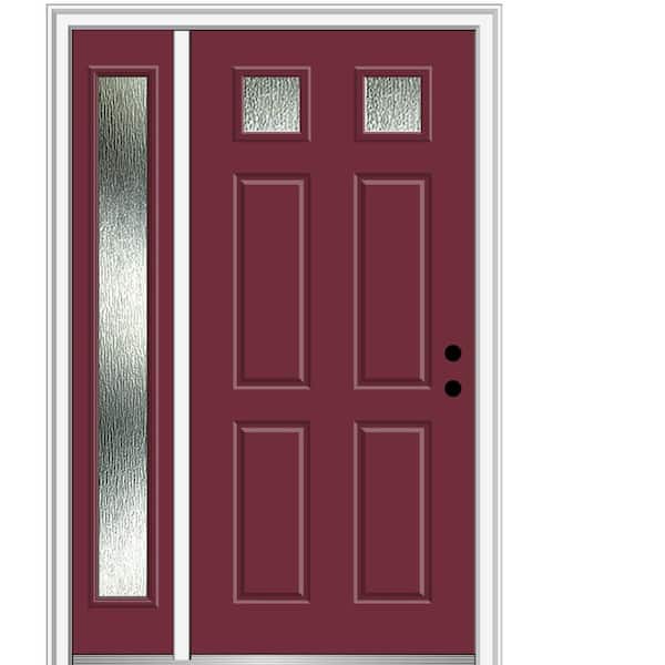 Rain Glass 48 in. x 80 in. Left-Hand Inswing Burgundy Fiberglass Prehung Front Door on 6-9/16 in. Frame