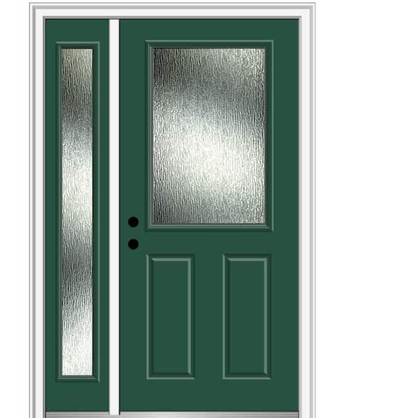 Rain Glass 50 in. x 80 in. Right-Hand Inswing Hunter Green Fiberglass Prehung Front Door on 4-9/16 in. Frame