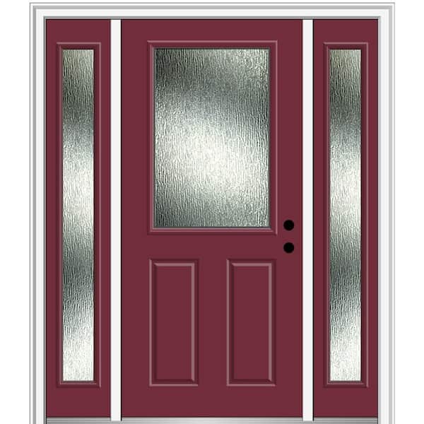 Rain Glass 60 in. x 80 in. Left-Hand Inswing Burgundy Fiberglass Prehung Front Door on 4-9/16 in. Frame