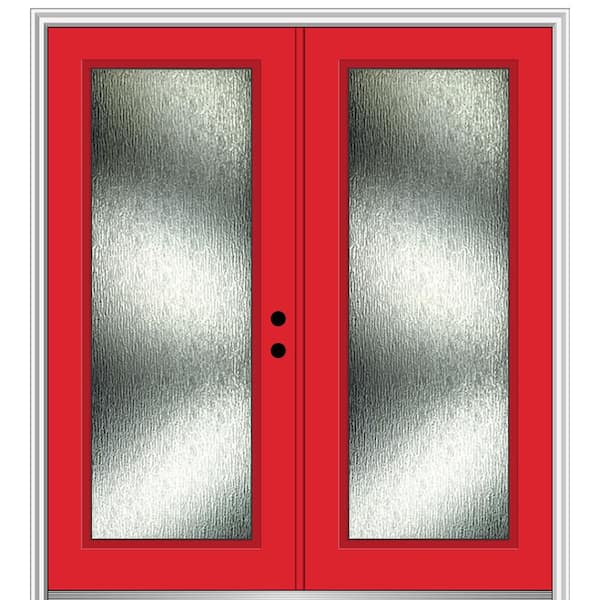 Rain Glass 64 in. x 80 in. Left-Hand Inswing Full Lite Painted Red Saffron Prehung Front Door on 6-9/16 in. Frame