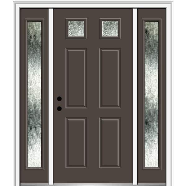 Rain Glass 64 in. x 80 in. Right-Hand Inswing Brown Fiberglass Prehung Front Door on 6-9/16 in. Frame
