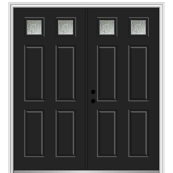 Rain Glass 68 in. x 80 in. Right-Hand Inswing Black Fiberglass Prehung Front Door on 4-9/16 in. Frame