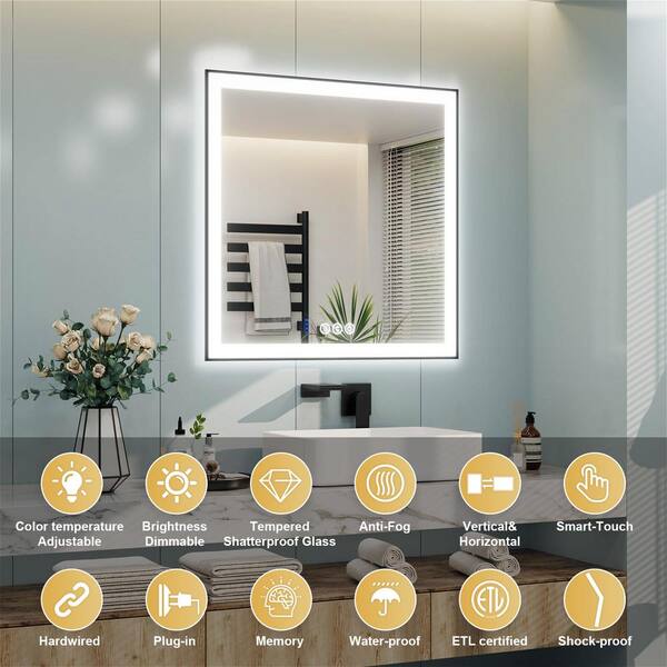 MOC 36 in. W x 36 in. H Square Framed LED Lighted Wall Mount Bathroom Vanity Mirror with Memory Function