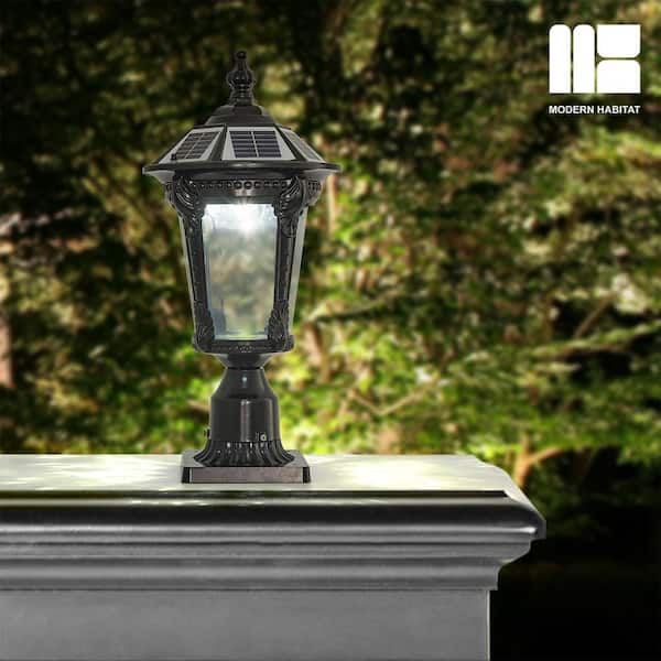 19 in. 1-Light Black Outdoor Solar Aluminium Waterproof Landscape Post Light with Pier Mount Light with LED