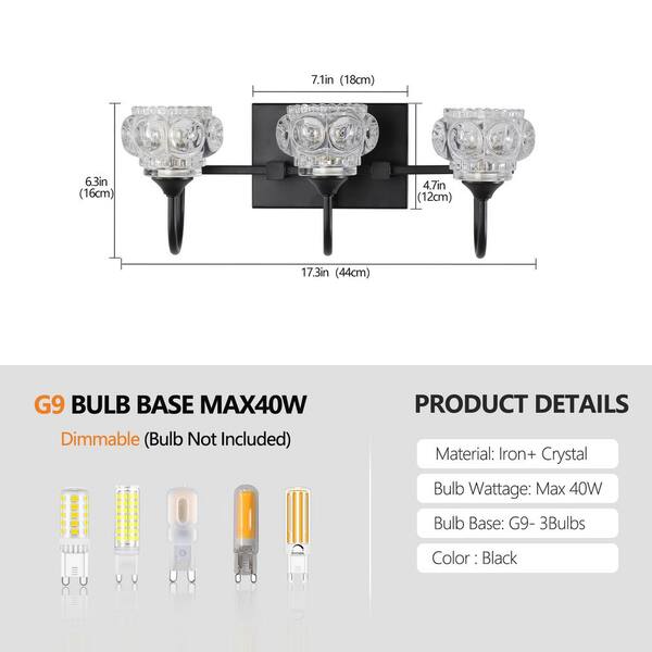 • Sleek black-finished metal frame with vintage crystal lampshades