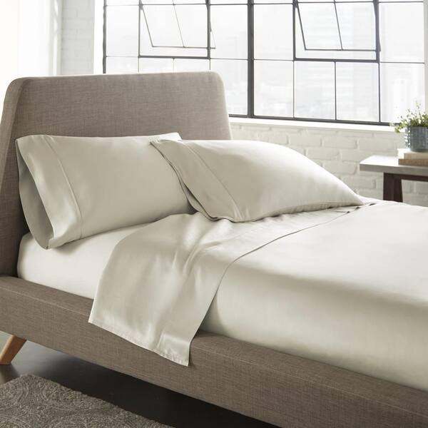Tatiana 4-Piece Ivory Solid Cotton 600-Thread Count Tencel Lyocell Queen Sheet Set