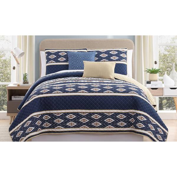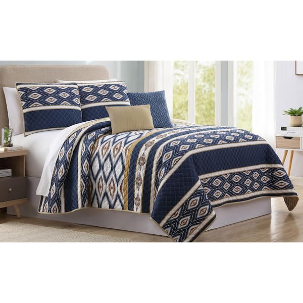 4-Piece Multi-Colored Printed Reversible Billy Ikat Twin Microfiber Quilt Set
