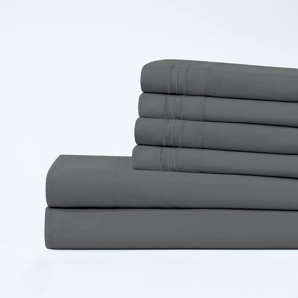 6-Piece Deep Pocket Navy Microfiber Bed Sheet Set, Queen