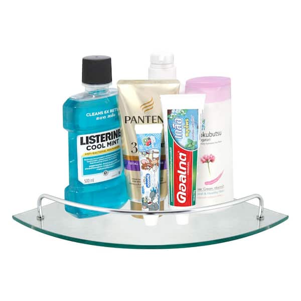 9.5 in. x 9.5 in. Glass Corner Shelf with Pre-Installed Rails in Polished Chrome