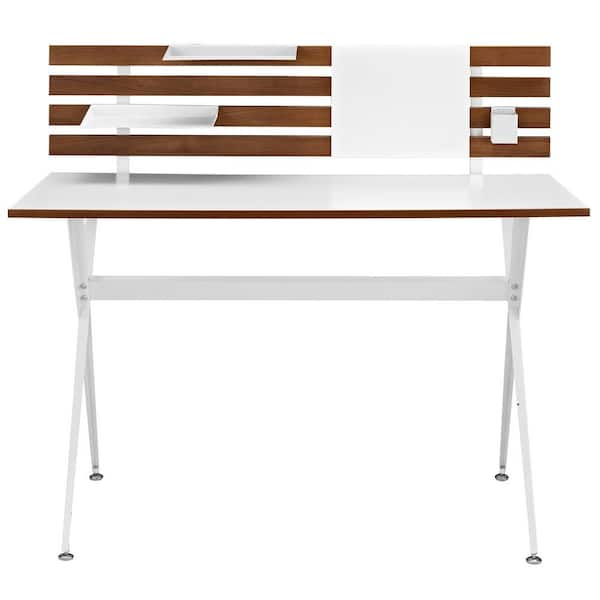 47 in. Rectangular Cherry/White Writing Desk with Open Storage