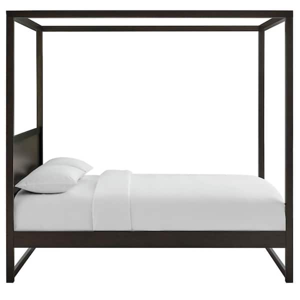Alva Brown Wood Frame Queen Canopy Bed with 4-Post Canopy Bed