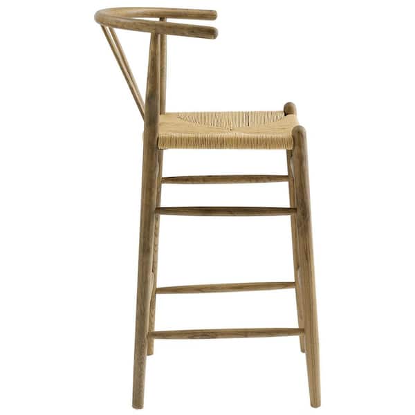 Amish Wood Rope Bar Height Stool in Weathered Gray Teak-29 in. Seat Height Mid Century Modern Retro Stool