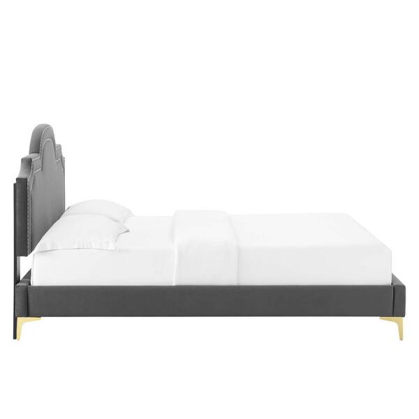 Aviana Brown Performance Velvet Frame King Platform Bed with Gold Metal Legs with Foot Caps