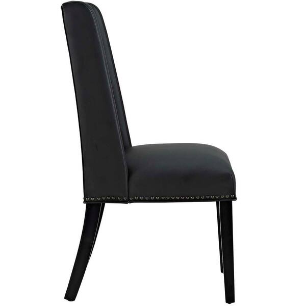 Baron Modern Tall Back Wood Vegan Leather Upholstered Two Dining Chairs in Black