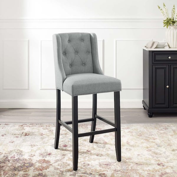 Baronet Tufted Button Upholstered Fabric Bar Stool in Light Gray