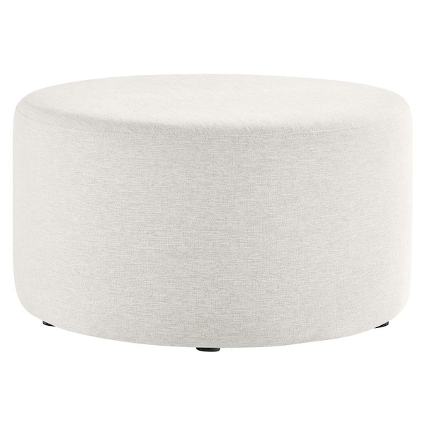 Callum Large 29 in. Round Woven Heathered Fabric Upholstered Ottoman in Heathered Weave Ivory