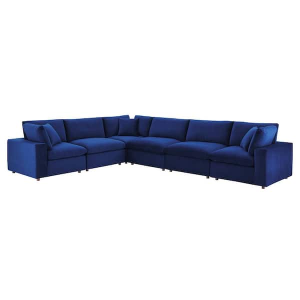 Commix 119 in. 6-Piece Navy Down Filled Overstuffed Performance Velvet Sectional Sofa