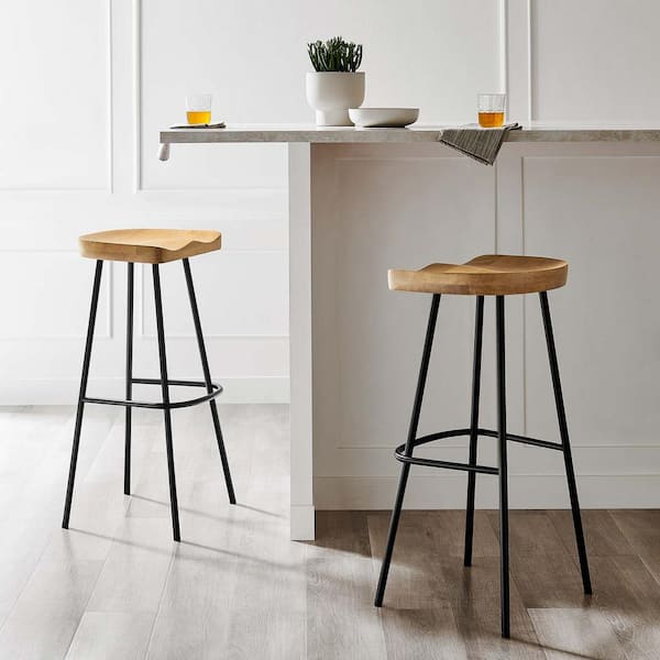 Concord 31.5 in. in Oak Backless Wood Bar Stools - Set of 2