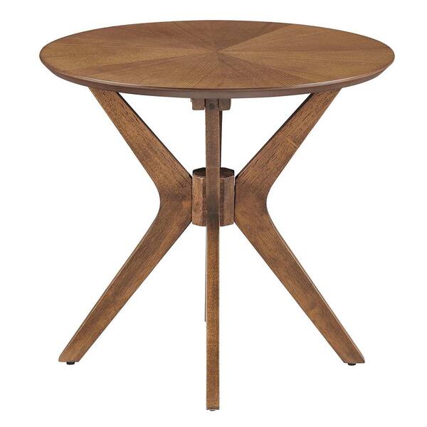 Crossroads 24 in. Round Wood Side End Table in Walnut