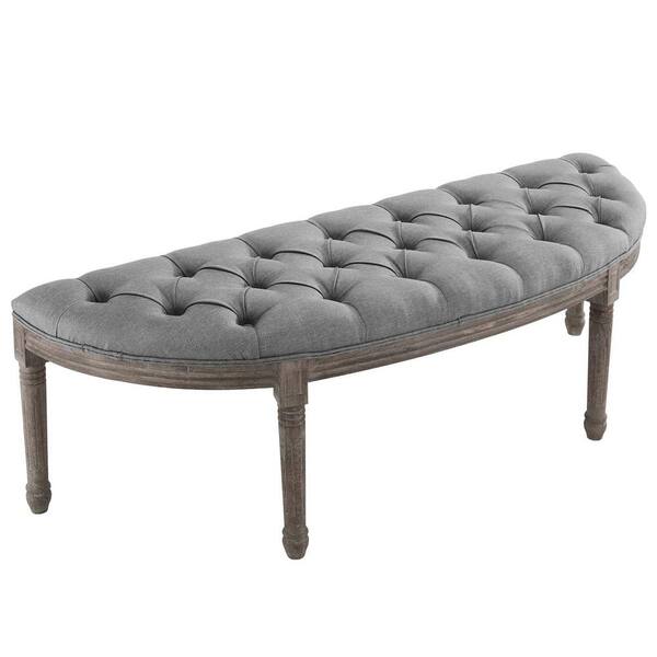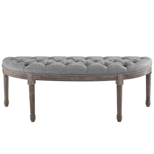 Esteem Vintage French Upholstered Fabric Semi-Circle Bench in Light Gray