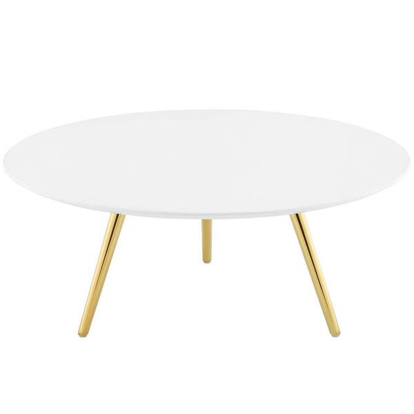 Lippa 36 in. White Round MDF Wood Coffee Table with Gold Tripod Base