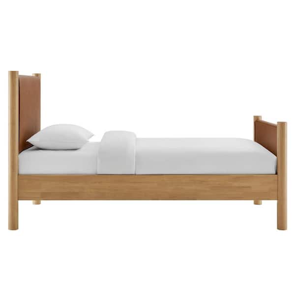 Maven Brown Wood Frame Twin Platform Bed with Faux Leather Upholstered Headboard and Footboard