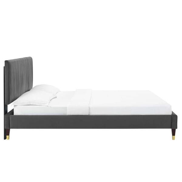 Peyton Performance Velvet Charcoal Queen Platform Bed