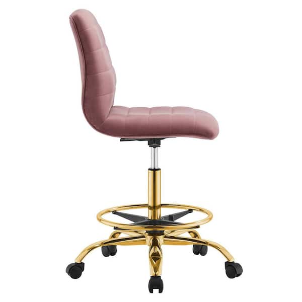 Ripple Armless Performance Velvet Adjustable Height Drafting Chair in Gold Dusty Rose