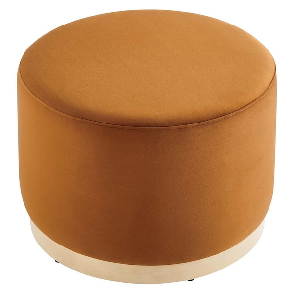Tilden Large 23 in. Round Performance Velvet Upholstered Ottoman in Rust Natural