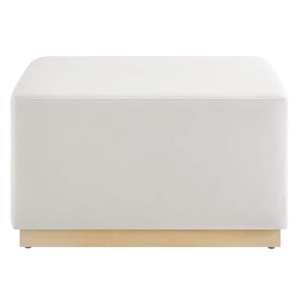 Tilden Large 28 in. Alabaster Natural Performance Velvet Upholstered Square Ottoman