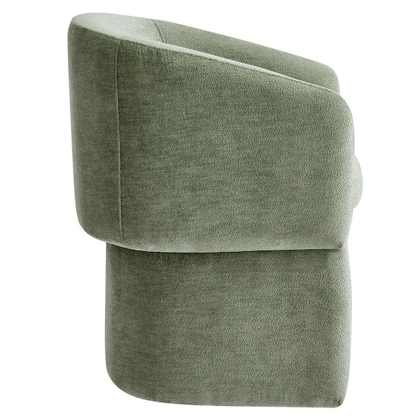 Verity Modern Chenille Barrel Dining Chair in Sage-Fabric Upholstered Accent Armchair With Curved Back