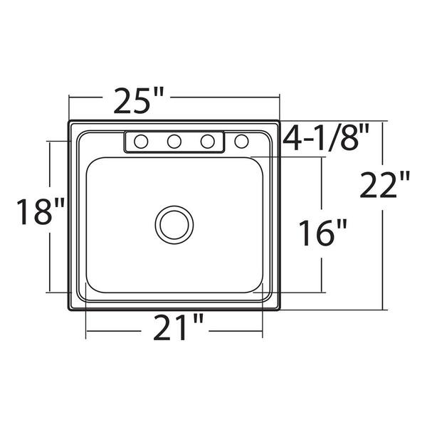 • Sink measures 25 in. L x 22 in. W x 6-1/2 in. D
