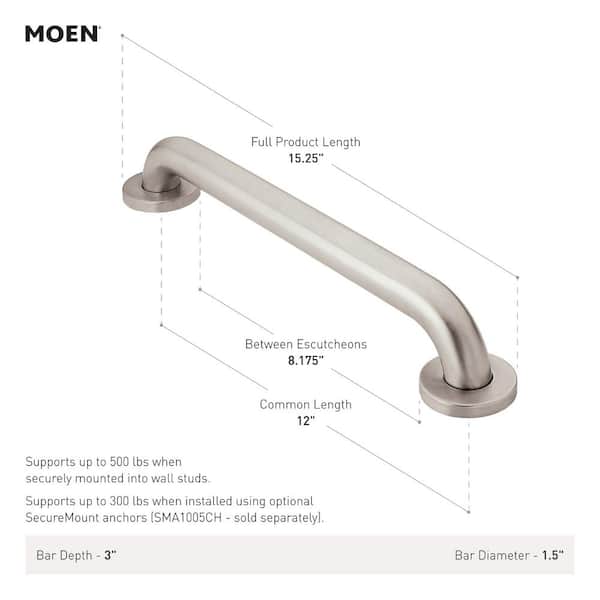 Home Care 12 in. x 1-1/2 in. Concealed Screw Grab Bar with SecureMount in Stainless Steel