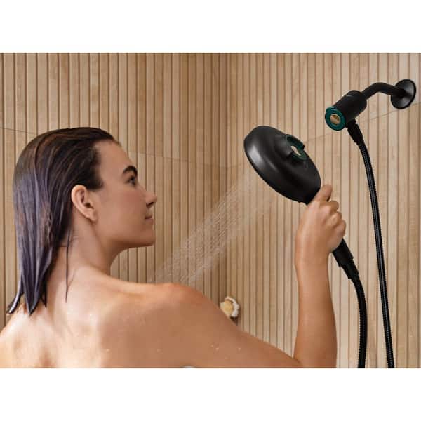 Quattro 4-Spray Patterns with 6.5 in. Single Wall Mount Handheld Shower Head with Magnetix in Matte Black