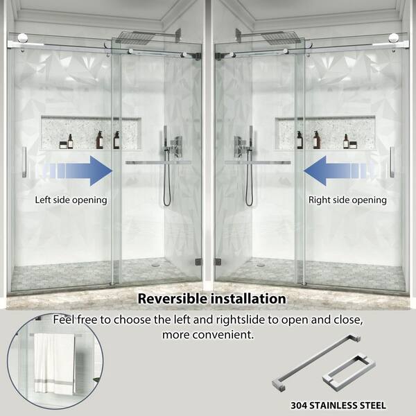 56-60.5 in. W x 60 in. H Single Sliding Frameless Tub Door in Chrome with 3/8 in. Clear Tempered Glass