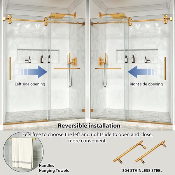 56-60.5 in. W x 76 in. H Single Sliding Frameless Shower Door in Brushed Gold with 3/8 in. Clear Tempered Glass