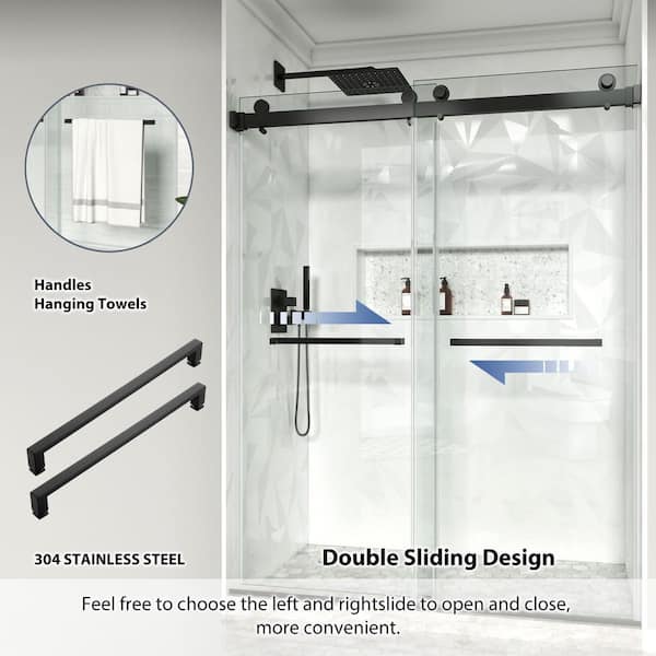 56-61 in. W x 60 in. H Double Sliding Frameless Tub Door in Matte Black with 3/8 in. Clear Tempered Glass