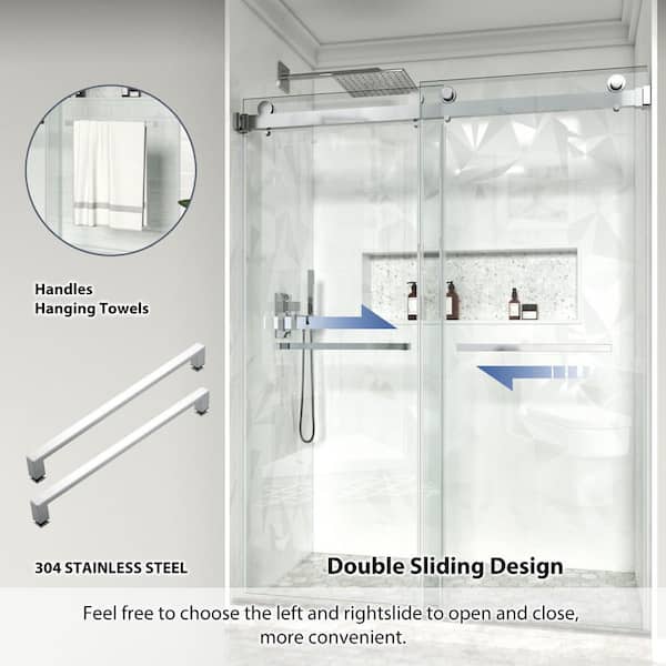 56-61 in. W x 66 in. H Double Sliding Frameless Tub Door in Chrome with 3/8 in. Clear Tempered Glass