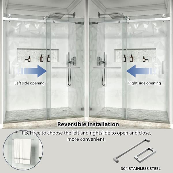 61-66.5 in. W x 76 in. H Single Sliding Frameless Shower Door in Brushed Nickel with 3/8 in. Clear Tempered Glass